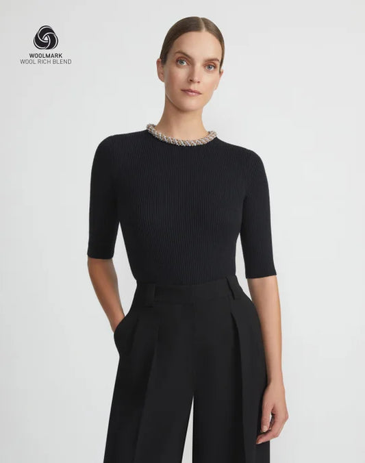 LAFAYETTE 148 Merino Wool-Silk Metallic Baroque Collar Sweater
