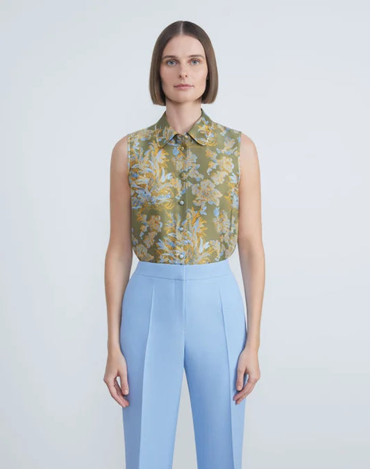 LAFAYETTE 148 Floral Frost Toile Texture Silk Sleeveless Blouse