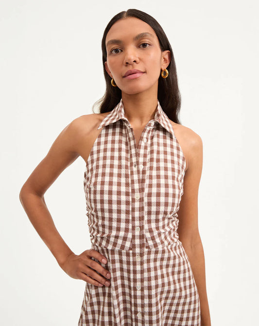 VERONICA BEARD Mackey Gingham Seersucker Halter Dress