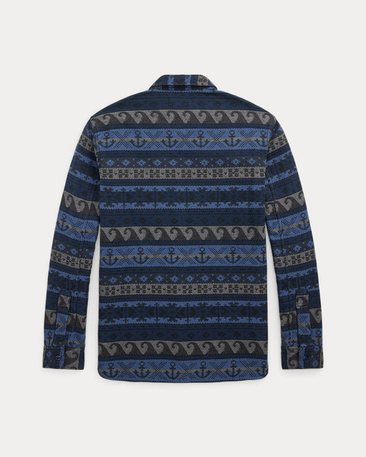 LUCIANO BARBERA Long Sleeve Linen Stripe Shirt (Green)