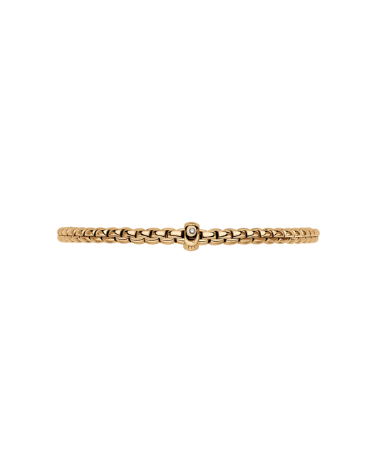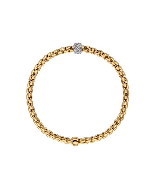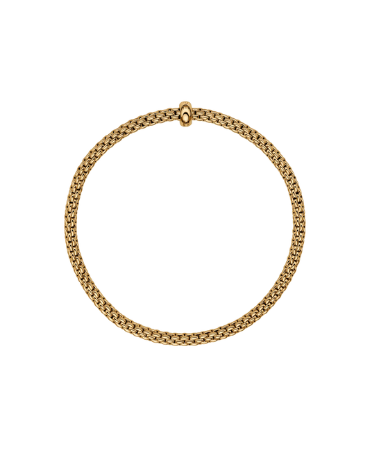 "A masterpiece of jewelry making and engineering at the same time, Flex’it is a patented system for producing jewelry that is entirely and uniquely flexible, comfortable and easy to wear, in 18-carat gold. Flex’it is the brand’s signature: if FOPE jewelry is known the world over, it is because of the mesh that is made flexible by a patented system of tiny 18-carat gold springs, which create original styles and fits."