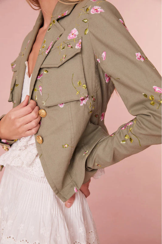 LOVE SHACK FANCY Dolisa Embroidered Military Jacket