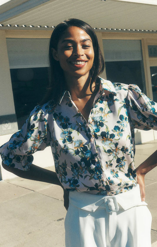 LAFAYETTE 148 Striped Cotton Puff Sleeve Overshirt