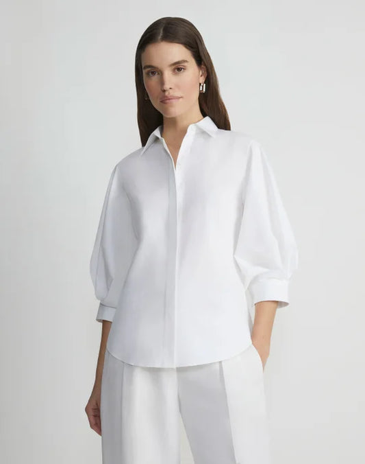 LAFAYETTE 148 Stretch Cotton Balloon Sleeve Shirt
