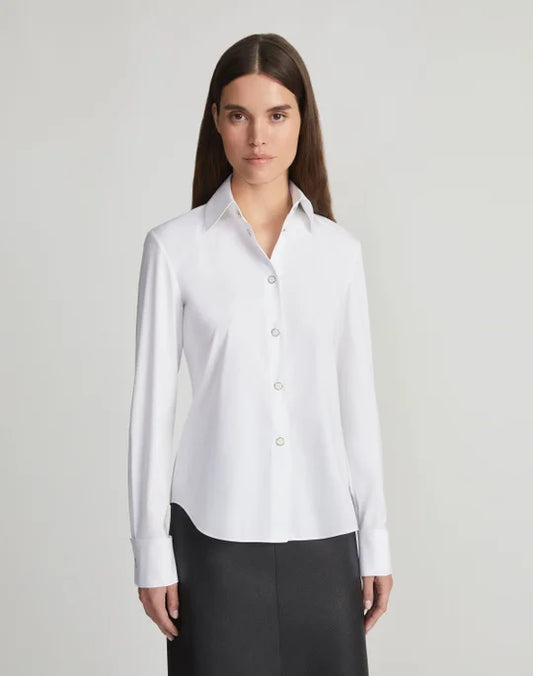 LAFAYETTE 148 Stretch Cotton Snap Front Slim Shirt