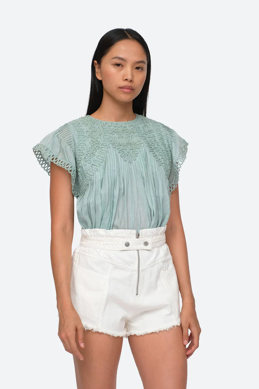 VERONICA BEARD Akeela Ruffled Shoulder Tee