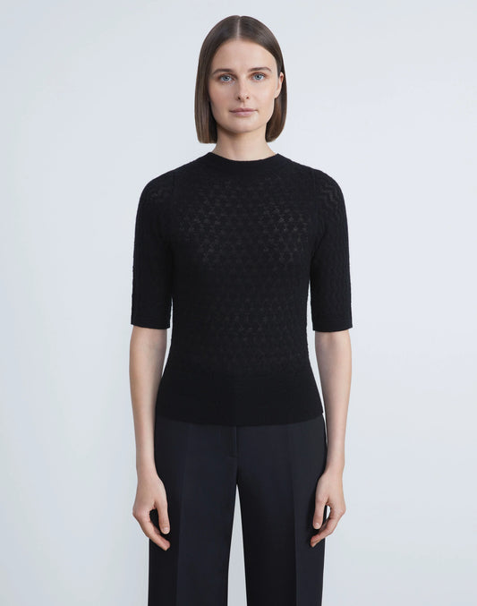 LAFAYETTE148 Cashmere Mixed Stitch Crewneck Sweater