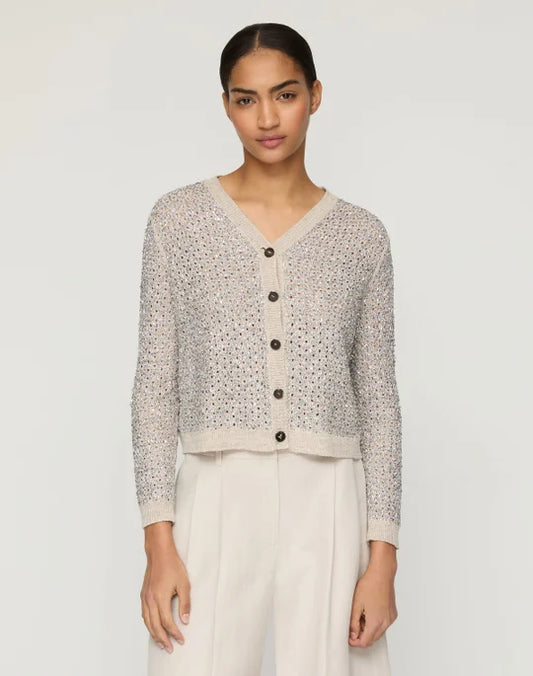 LAFAYETTE 148 Metallic Linen Silk Pointelle Cardigan