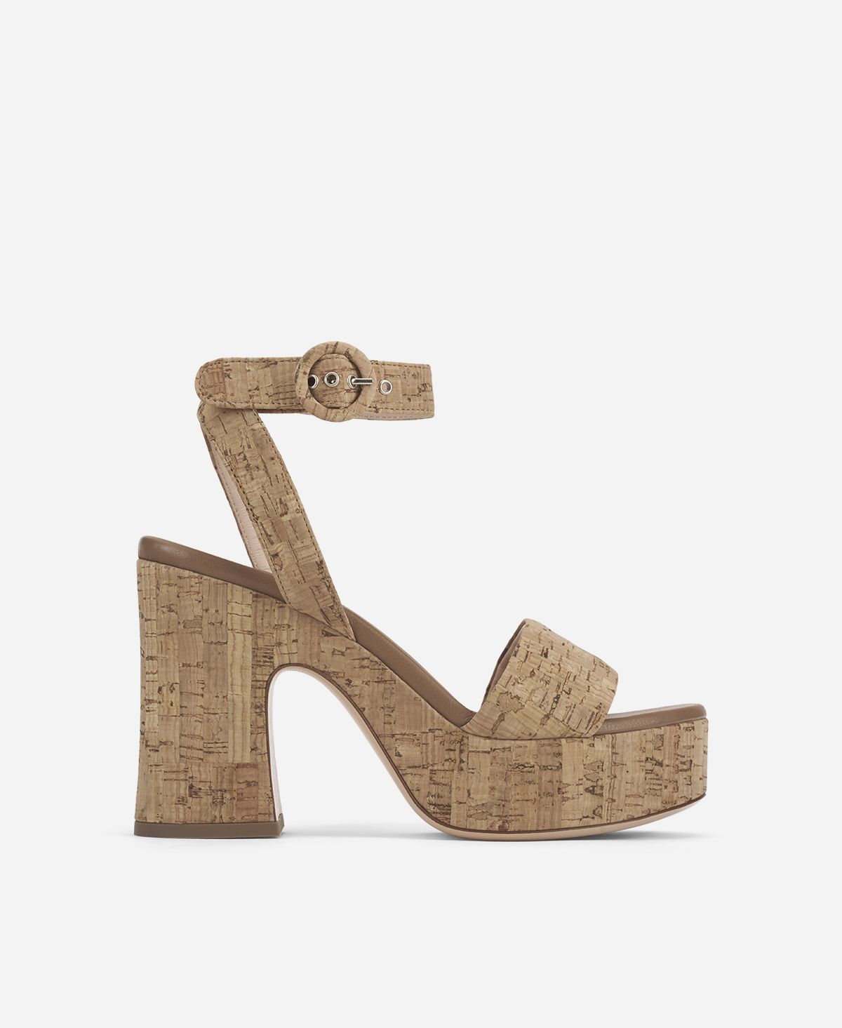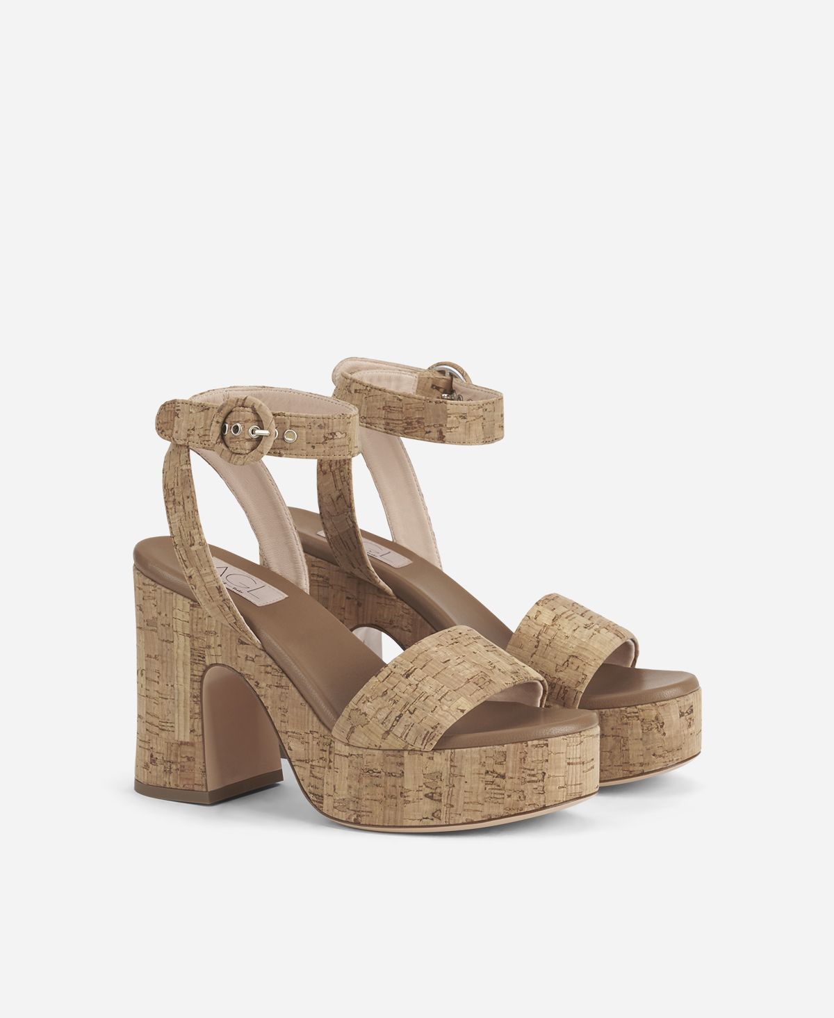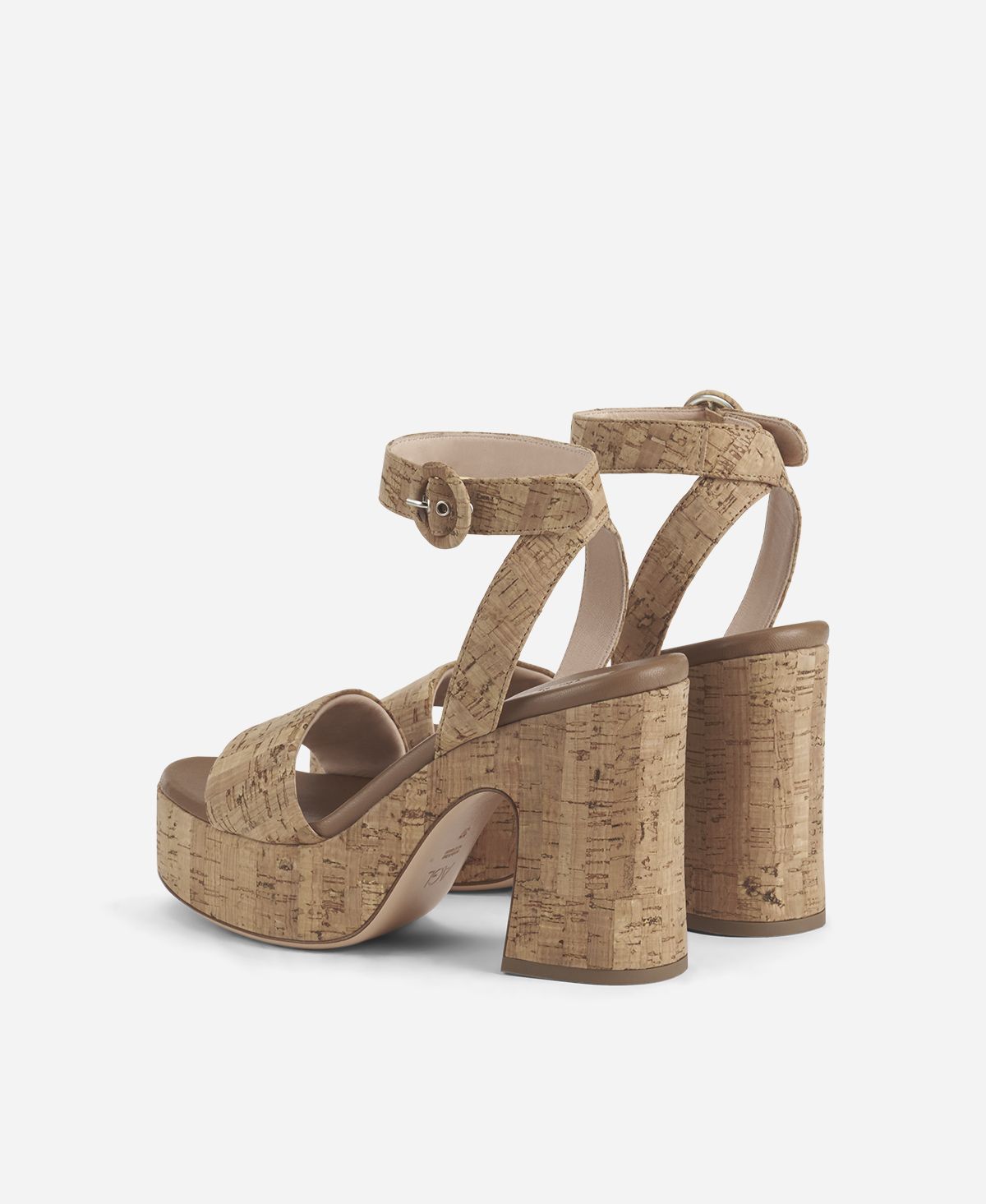 - 10 cm heel and 3 cm front platform covered with cork.
