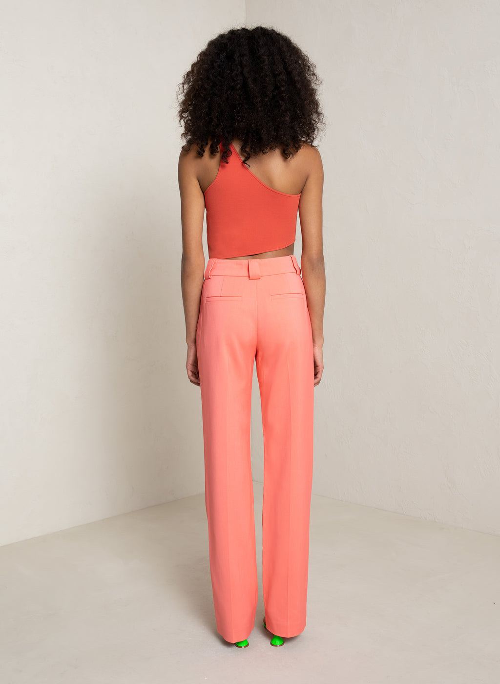 The Colby Top is crafted from soft viscose in an orange-red hue. This one-shoulder silhouette is fitted and cropped for an asymmetric shape.