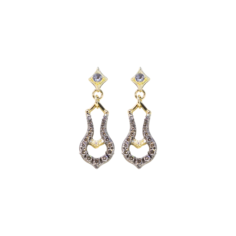 Earring 18k Yellow Gold and Grey Sterling Silver Horseshoe with 0.887 CT Grey White and Champagne Diamonds.