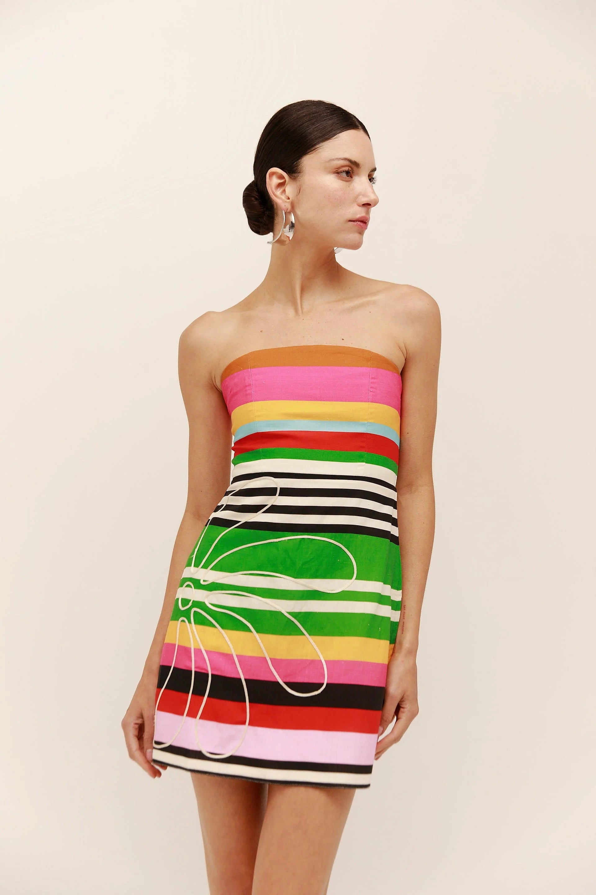 Strapless fitted mini dress. Fully lined. Made from 100% linen.