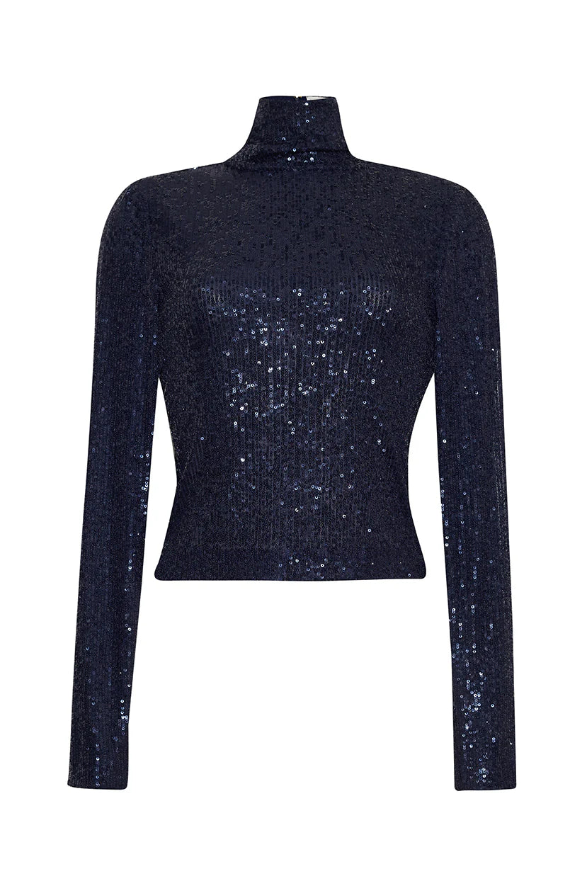 "New for the holiday season, our Piper Top in stretch sequin is a fluid and fun turtleneck. Brilliant for cold weather layering and designed in our most-loved prints. The Piper is perfect for tucking into trousers or teaming with a chic blazer."