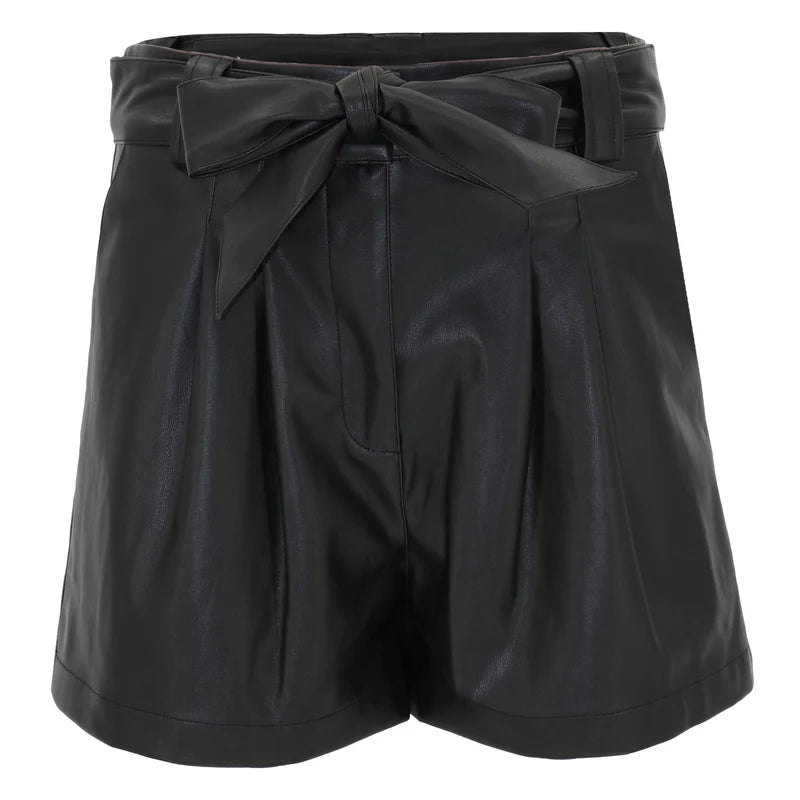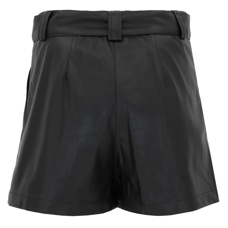 Our classic Indigo Short is cut in a sleek black vegan leather. These high-waisted silhouette shorts are designed with a stationed cuff and elastic back for comfort. Complete with a removable self-tie belt.