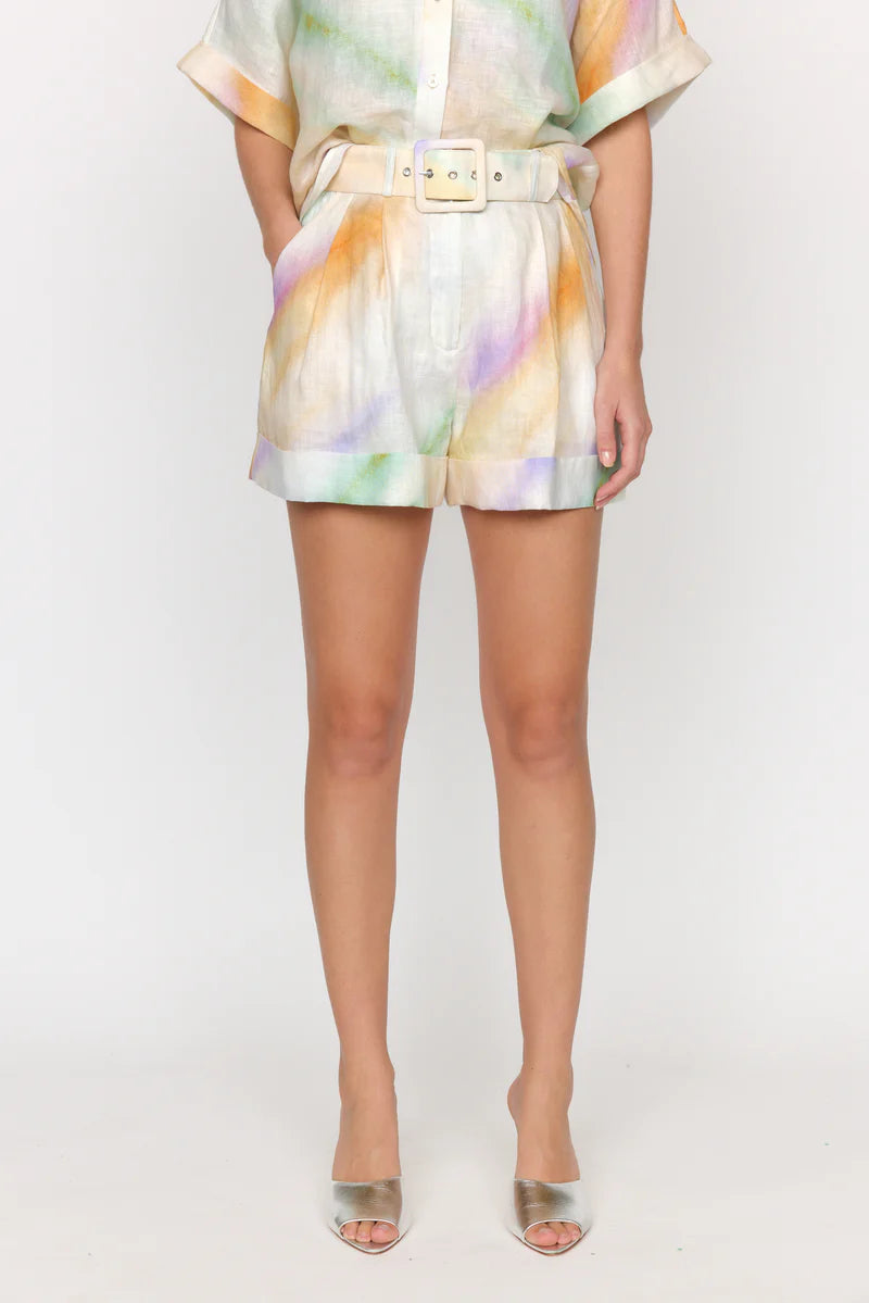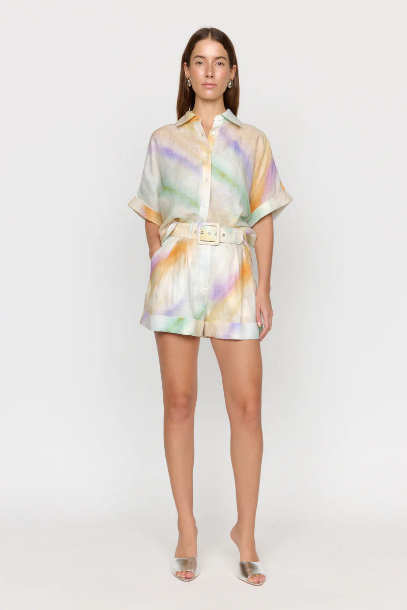 The Lola Short is cut from our light and breathable linen in our soft Cloud print. These exquisitely crafted shorts embody refined sophistication with a tailored design and a gracefully folded hem. The Lola balances comfort with elegance in these effortless shorts that can be paired back to anything. She is complete with an elastic back for comfort and a metal zipper and hook and bar at the fly.