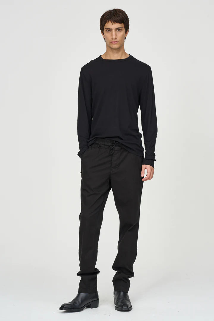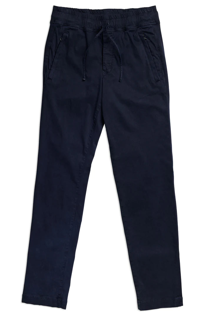 Crafted from a super soft and breathable stretch sateen, the Simon Pant will easily become the new favorite pant you never knew you needed. Constructed in a classic trouser silhouette with a straight leg fit, these pants are finished with an elastic waistband and drawstring for maximum comfort with zippered trouser pockets for functionality and durability.