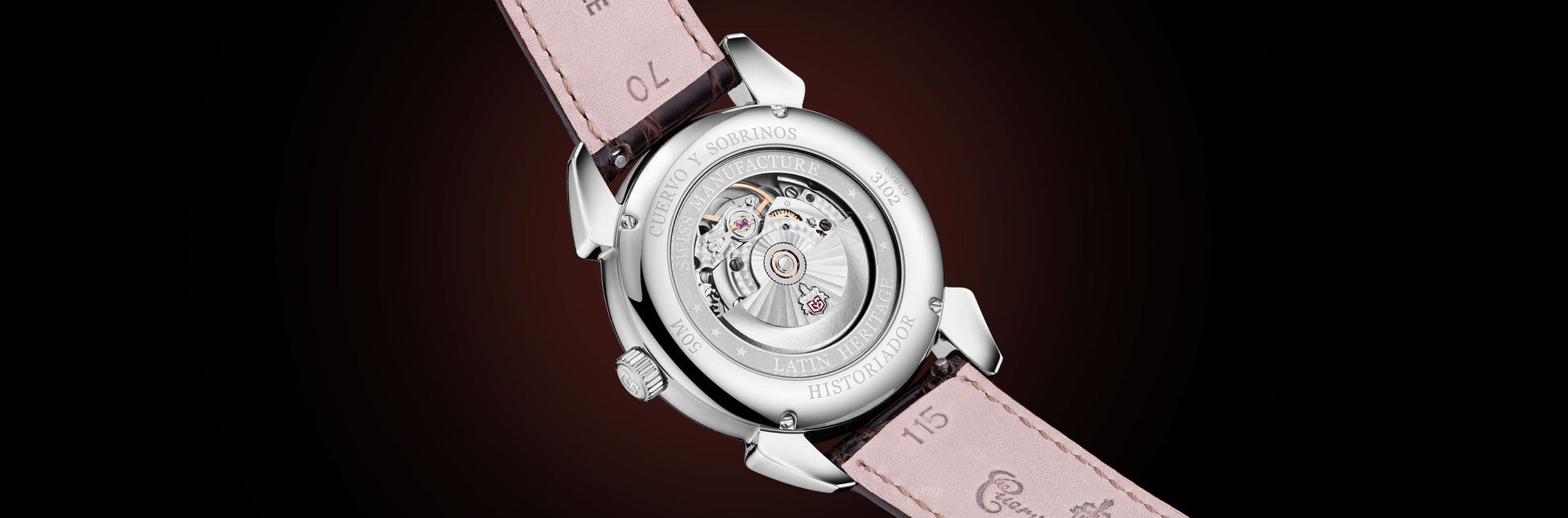 Case: Stainless steel, diameter 40 mm, height 11.5 mm, double curved sapphire crystal with anti-reflective coating, water resistant to 5 ATM, screwed see-through case back with sapphire crystal