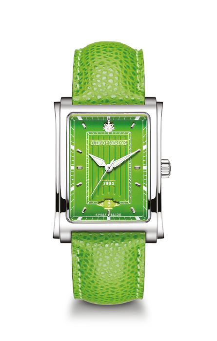 The Señora Caramelo embraces some of the lively colours which pervade life on this Caribbean island. This model, inspired by a historic Cuervo y Sobrinos watch of the 1950s, is available in a choice of vibrant colourways including, blue, green, orange, red and yellow.