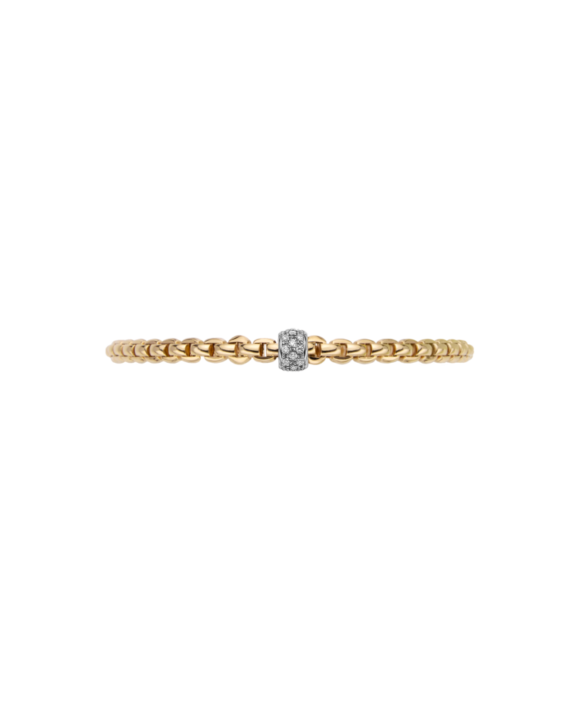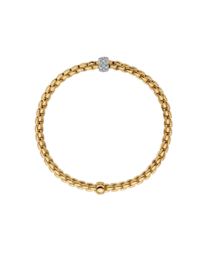 - Flexible bracelet entirely made of 18 carat gold with white gold rondel and diamond pave’