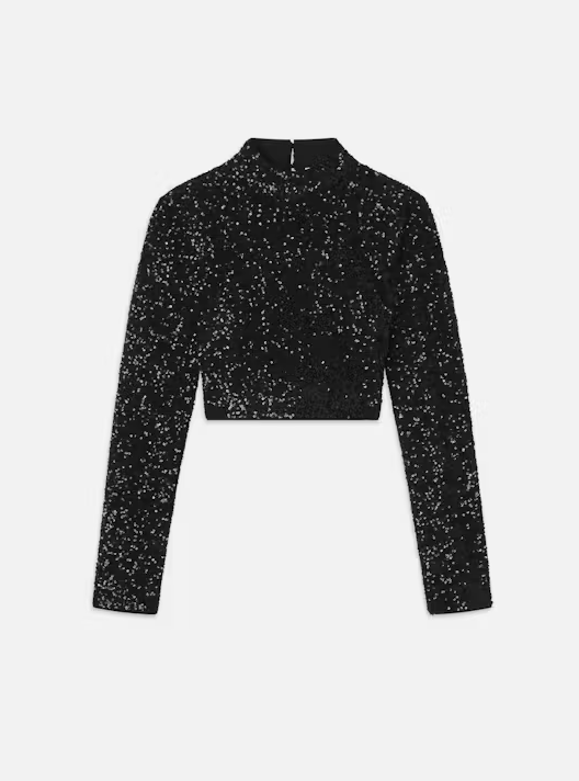 Embellished by sequins with a contemporary cropped cut, this sparkly number carries you through the season of celebration. Long sleeves and a mock neckline balance the cropped hem, while a hidden side zip allows you to dress with ease. Make it a set with the Sequin Mini Skirt.