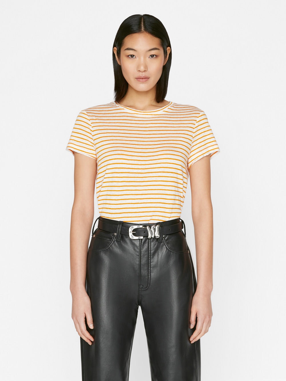 Crafted from light, breathable 100% organic linen for an elevated finish, this essential tee is slightly fitted through the body for the perfect fit. Even the short sleeves are cut to flatter—making this everyday tee a go-to for a laid-back yet pulled-together aesthetic.