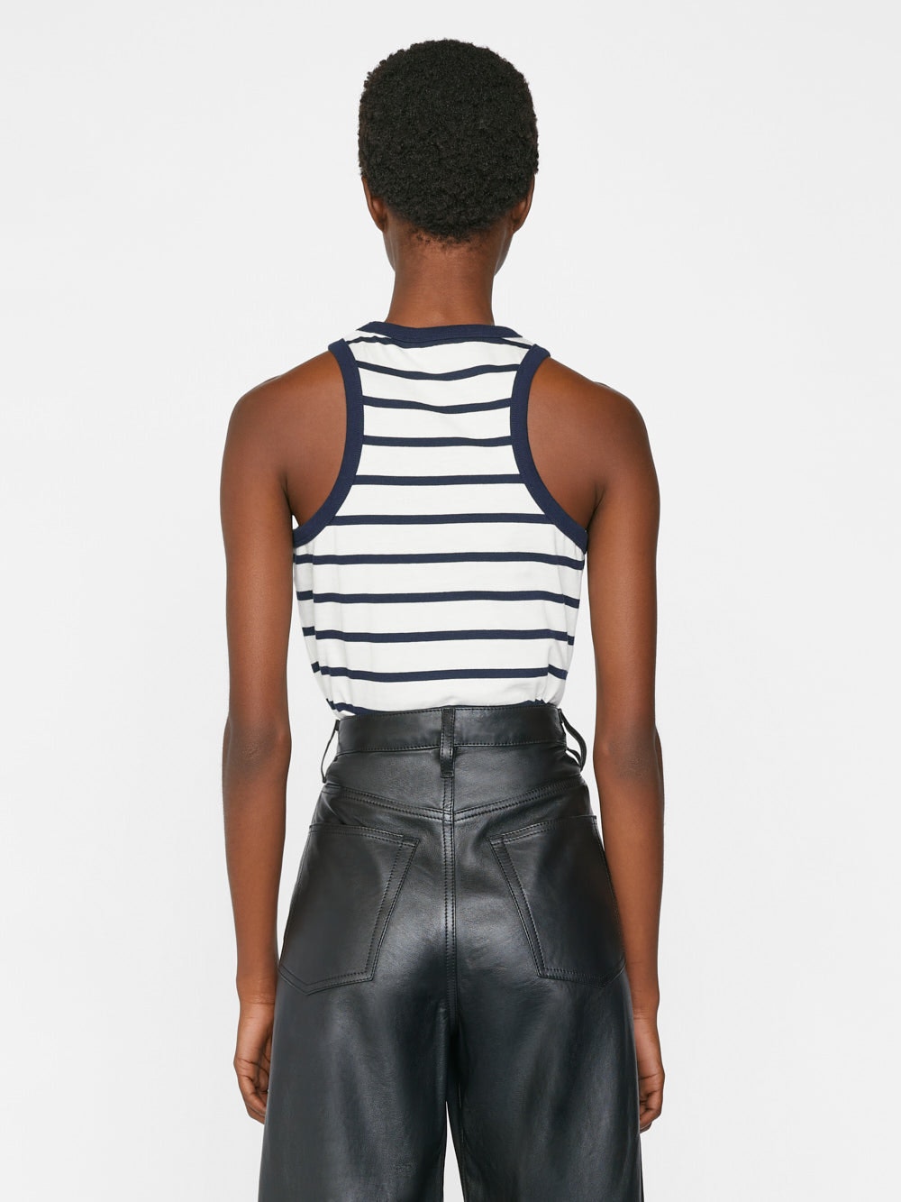 Close-fitting and crafted from ultra-soft organic cotton jersey with just enough stretch, this striped racerback-style tank features curved straps, extra-large armholes, and the FRM insignia embroidered in white. A true closet staple for layering in the winter and wearing solo all summer.