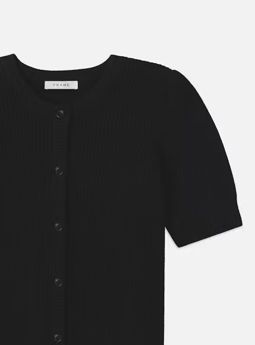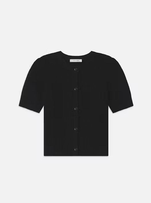 A timeless piece for transitional styling, this cardigan has a short-sleeve design crafted from a luxe wool-cashmere blend. Subtle puff sleeves are a FRAME favorite, complete with contrast ribbing along the button placket for a gentle distinction. fits TTS