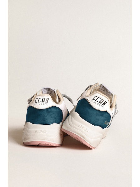 RUNNING SOLE NET UPPER LEATHER TOE AND SPUR PRINTED STAR SHINY LEATHER HEEL