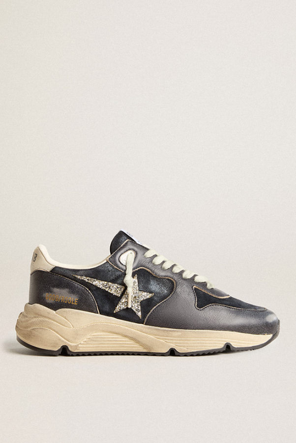 Urban style and a spirit of craftsmanship are combined in our Running Sole sneakers: the ideal companion for your metropolitan adventures. This women’s model features a dark blue suede upper with a glitter star and ice nabuk heel tab. And white laces add the finishing touch.