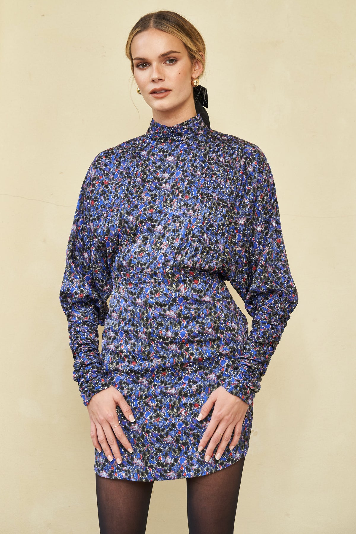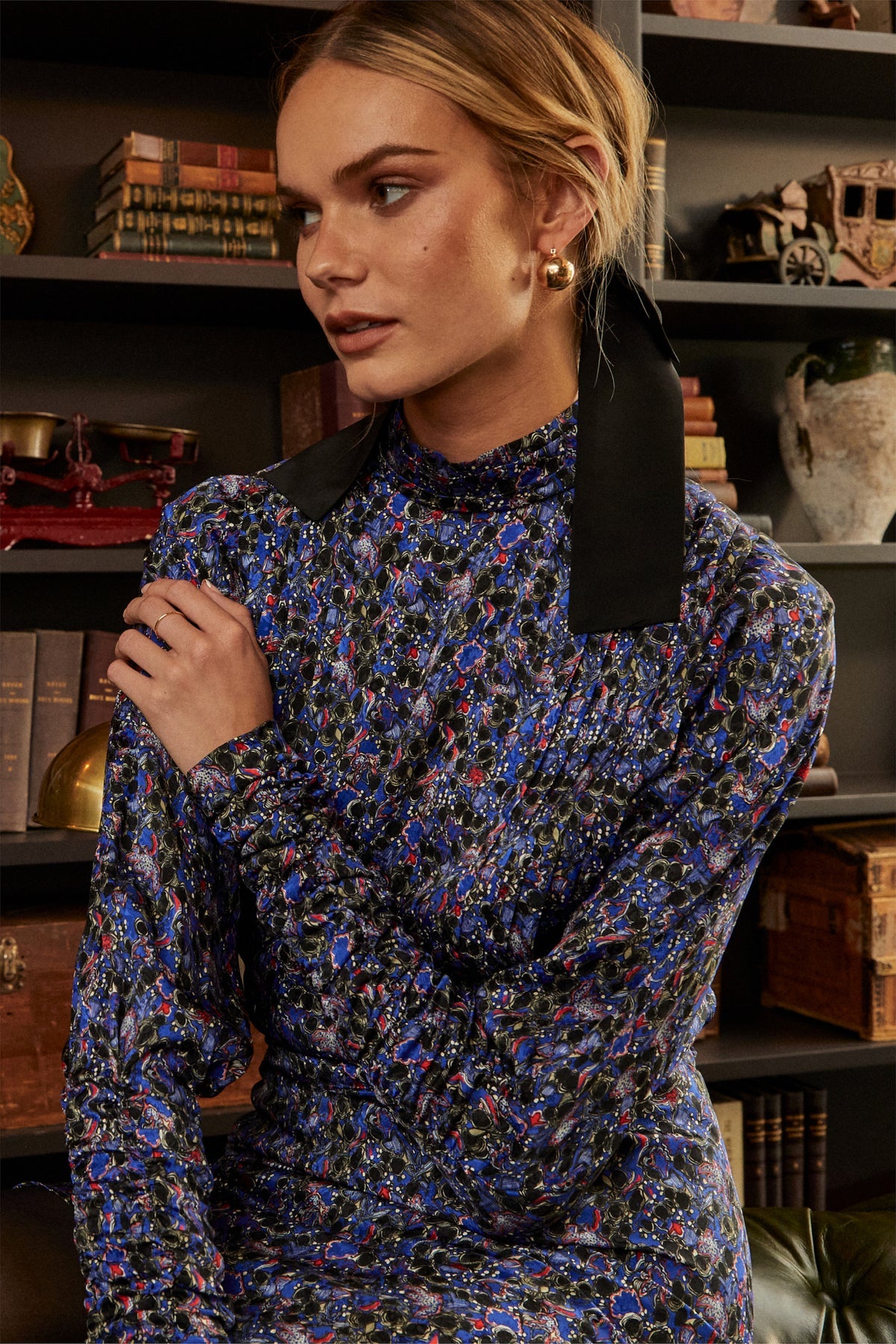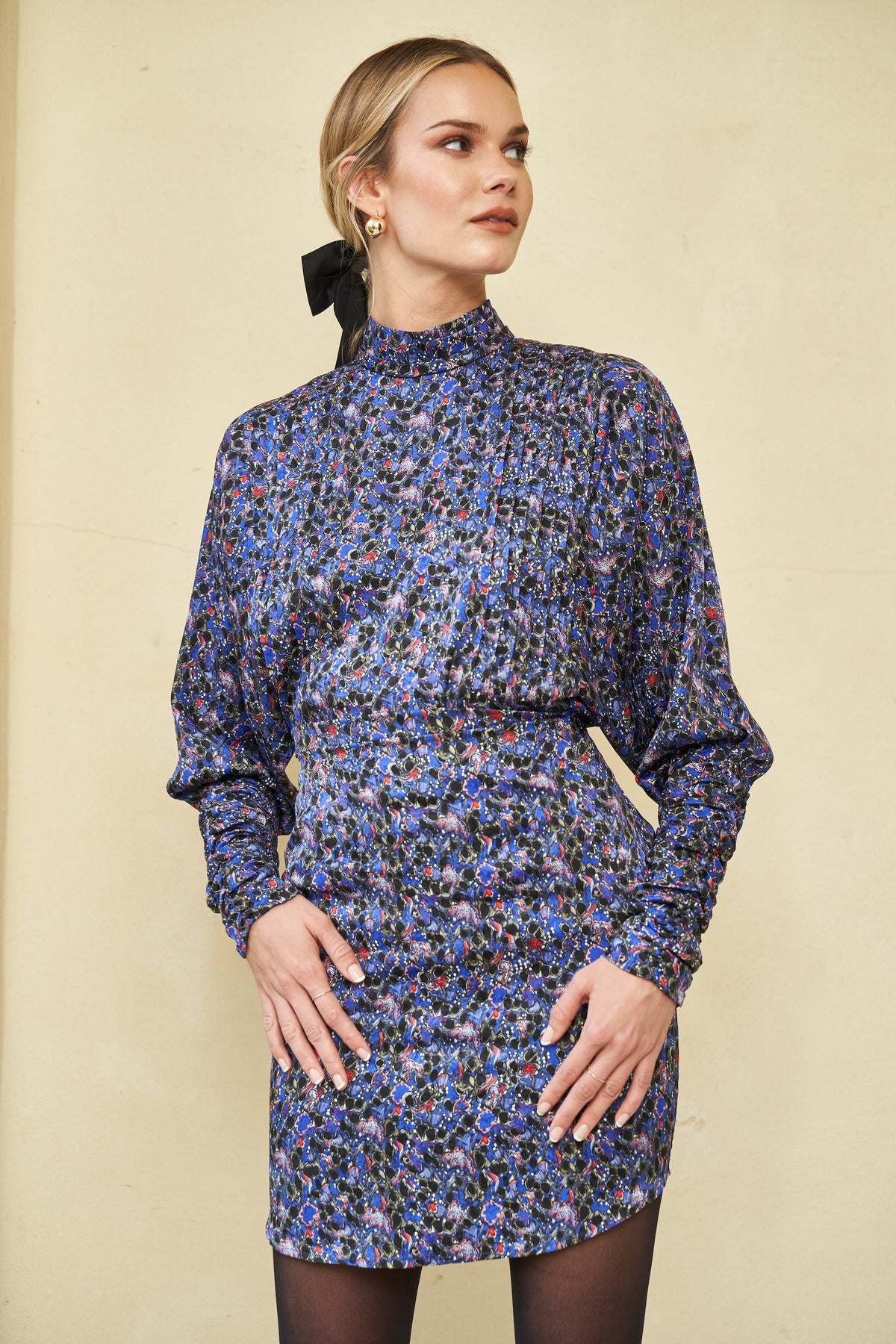 The Ariana Dress is THE LBD of the season. This long sleeved, high necked mini dress is cinched in all the right places creating a stunning silhouette for any holiday cocktail party, date night or seasonal celebration! Available in Onyx and our Geo Bloom prints.