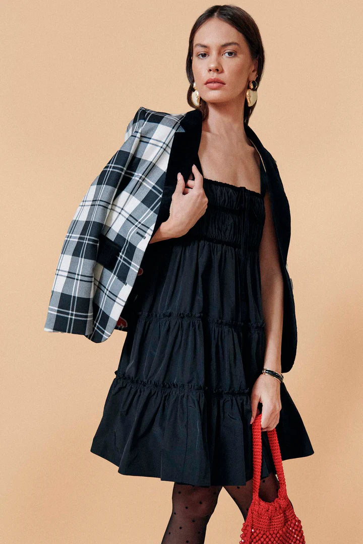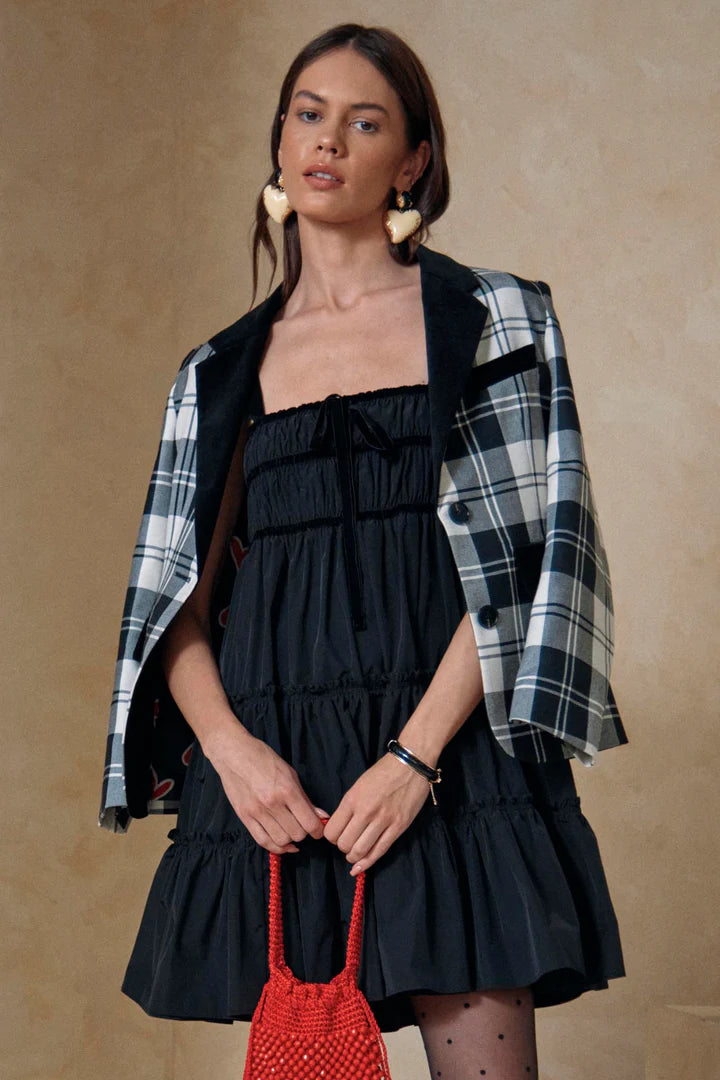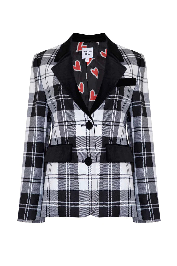 This season's Catherine blazer brings timeless sophistication to your closet, pairing luxurious Italian 100% virgin wool with black velvet. Featuring a relaxed fit with padding at the shoulders, velvet lapel collar and pocket flap detailing.