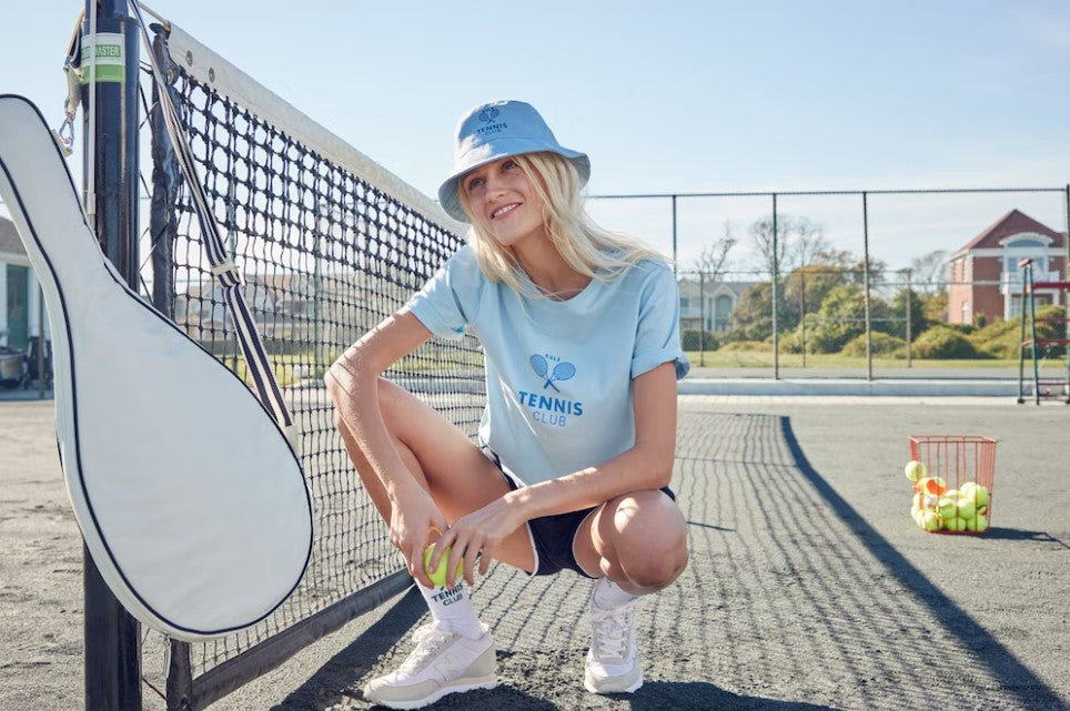 Welcome to the KULE Tennis Club! Spectators welcome. Serve up this vintage-inspired 100% cotton logo tee with matching socks. The Modern is made of a Portuguese cotton that's soft and light, with a straight cut that's so easy to wear. It's the perfect basic tee, no matter how you want to wear it.