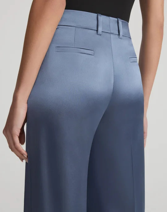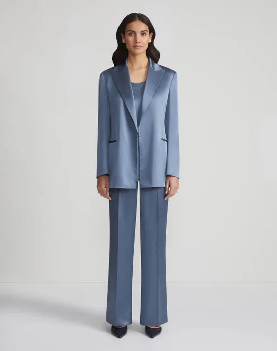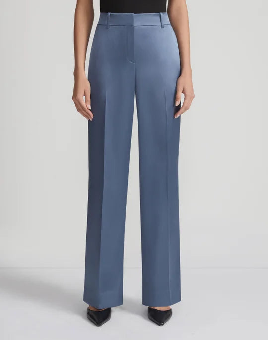 Lafayette 148's signature Sullivan pant is redefined with soft formality in color-rich satin chosen for its refined luster and fluid drape. The modern trouser silhouette sits slightly below the waist with a straight-cut, full leg and clean-finished hems.