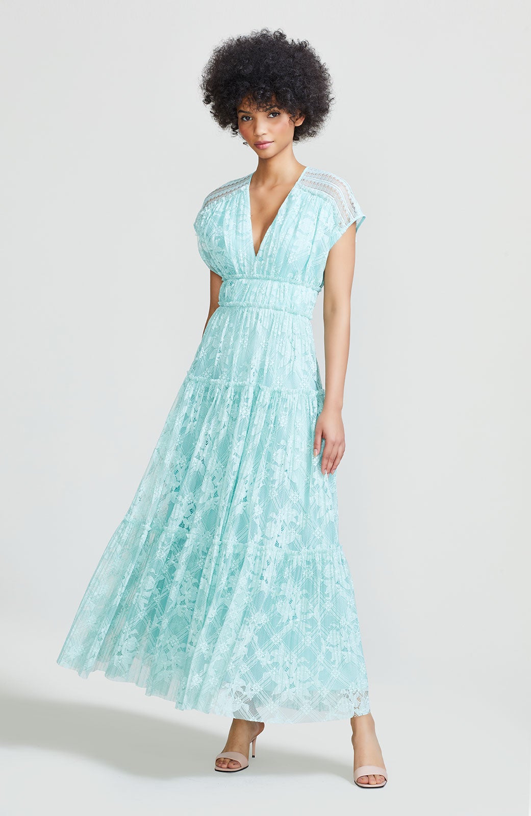 LELE ROSE Chantilly Lace V-Neck Midi Dress
