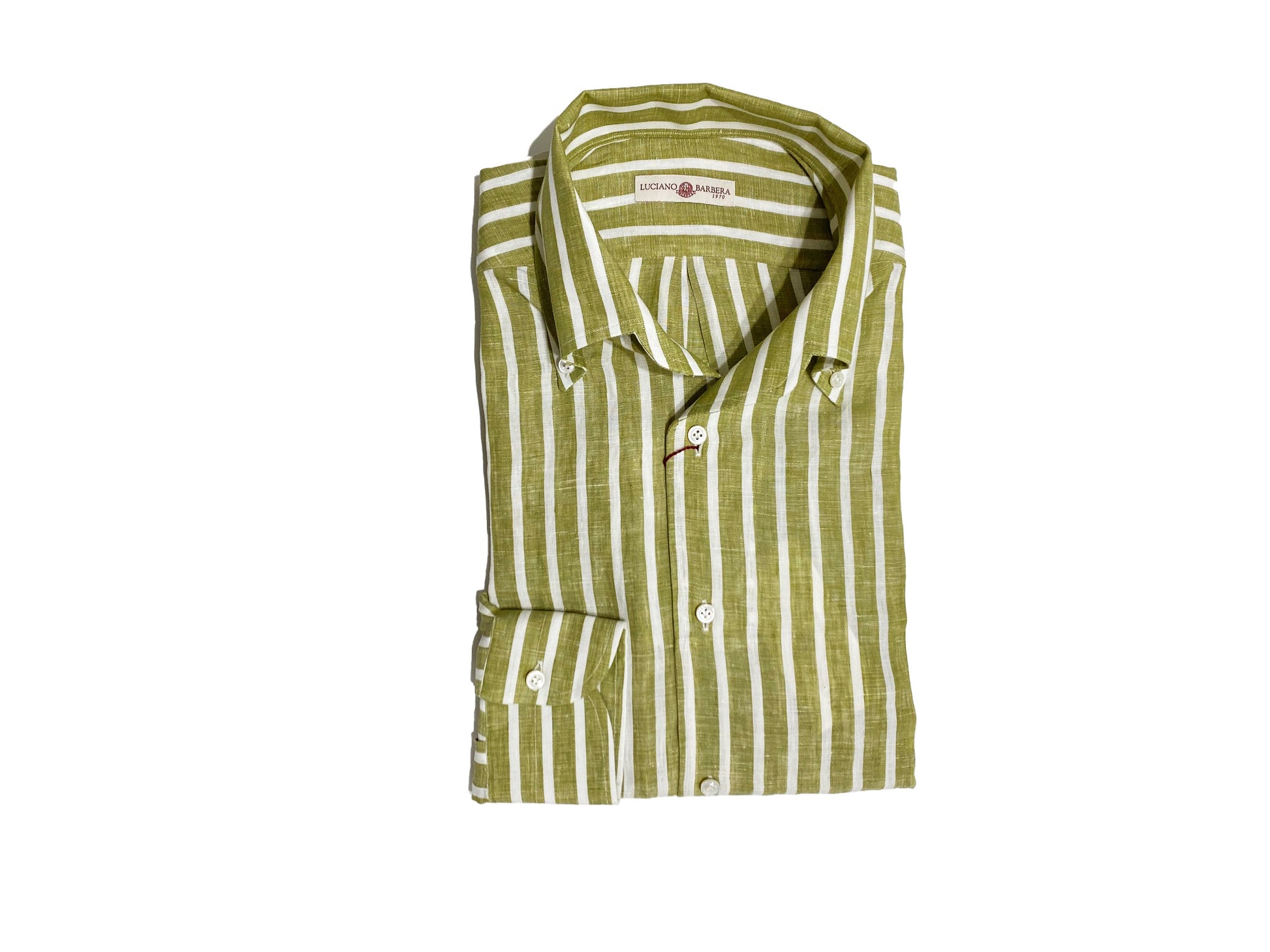 LUCIANO BARBERA Long Sleeve Linen Stripe Shirt (Green)