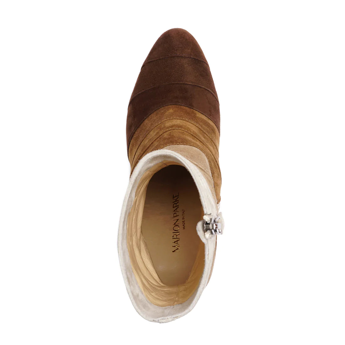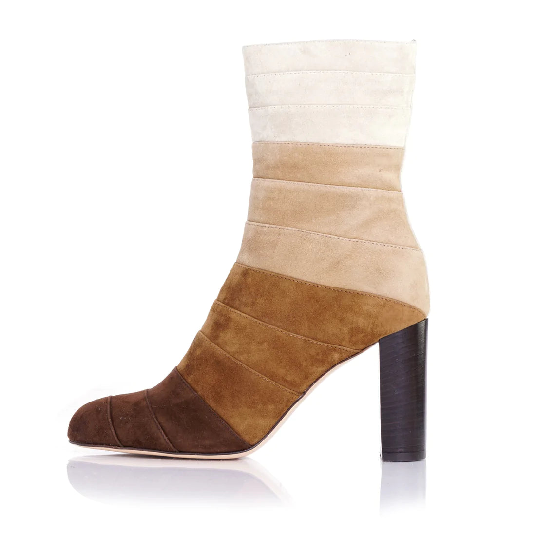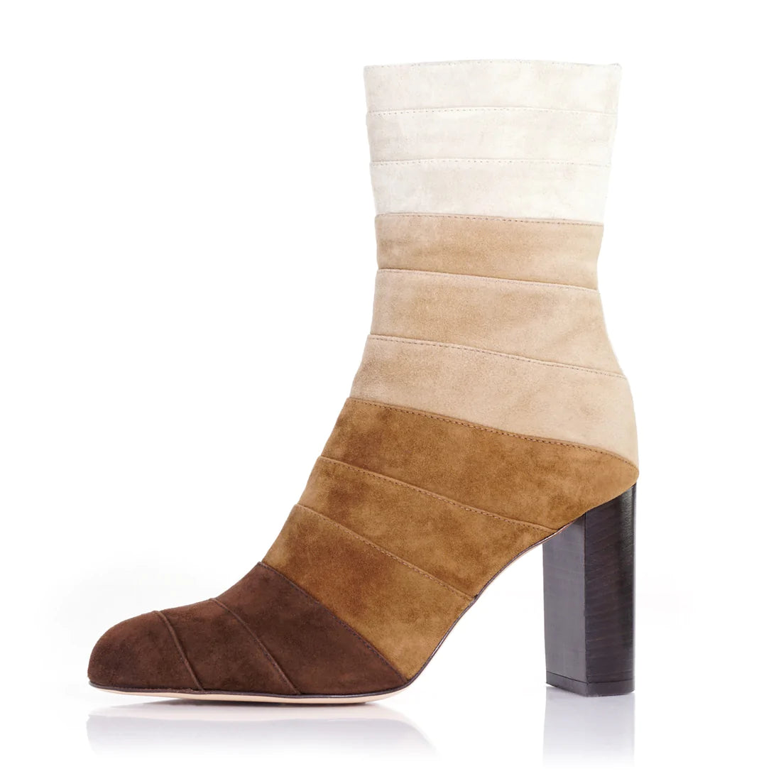 Layers of design. This suede bootie features a hand-stitched upper with layered suede, a versatile stacked block heel, and our twice-patented invisible insole. The zipper closure provides a secure fit, plus easy on and off.