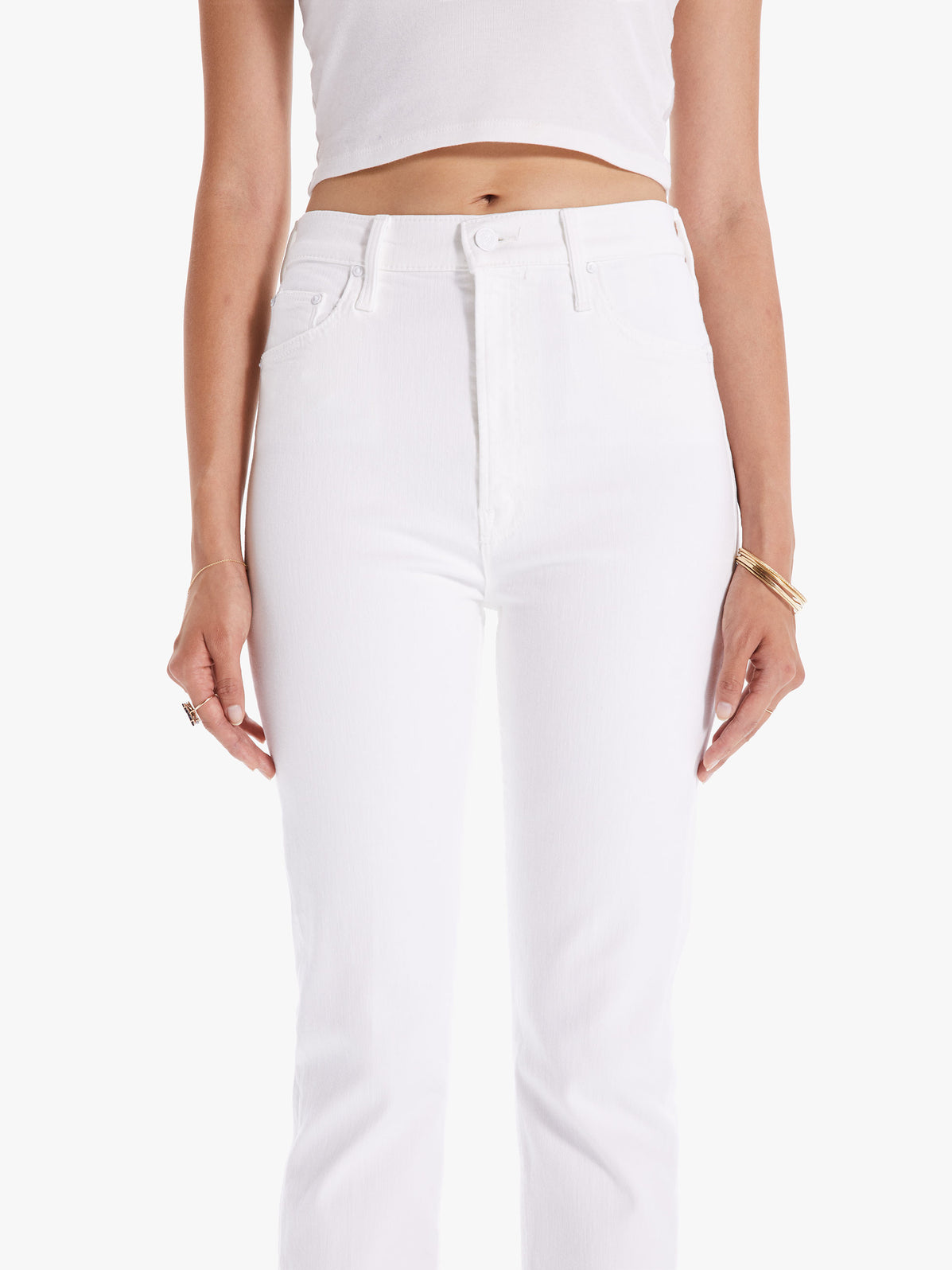 Mirror, mirror. The perfect high-waisted straight leg with an ankle-length inseam and a clean hem. Made from stretch denim, Fairest Of Them All is our bestselling white denim.