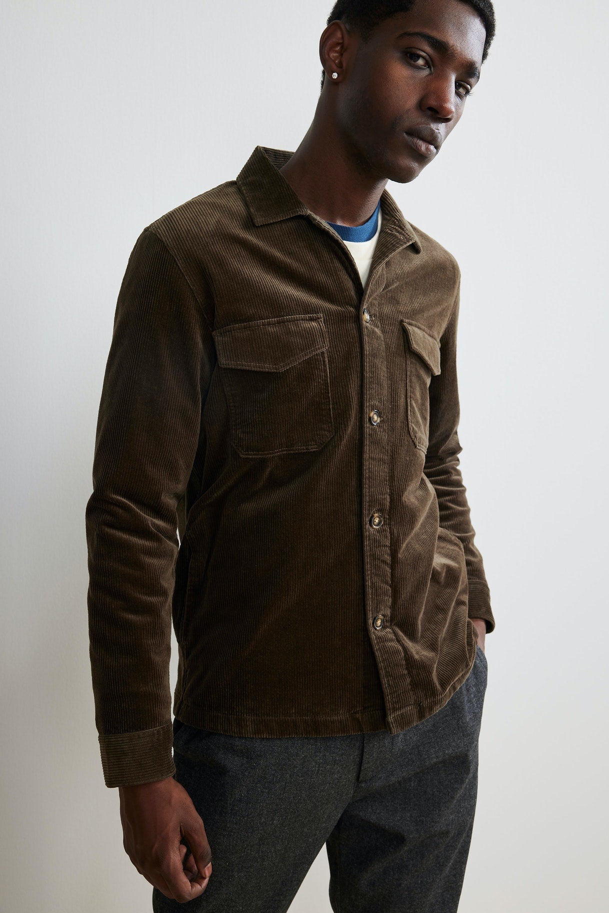 Overshirt crafted in an organic cotton corduroy from esteemed italian mill Duca Visconti. Designed with 2 chest pockets.