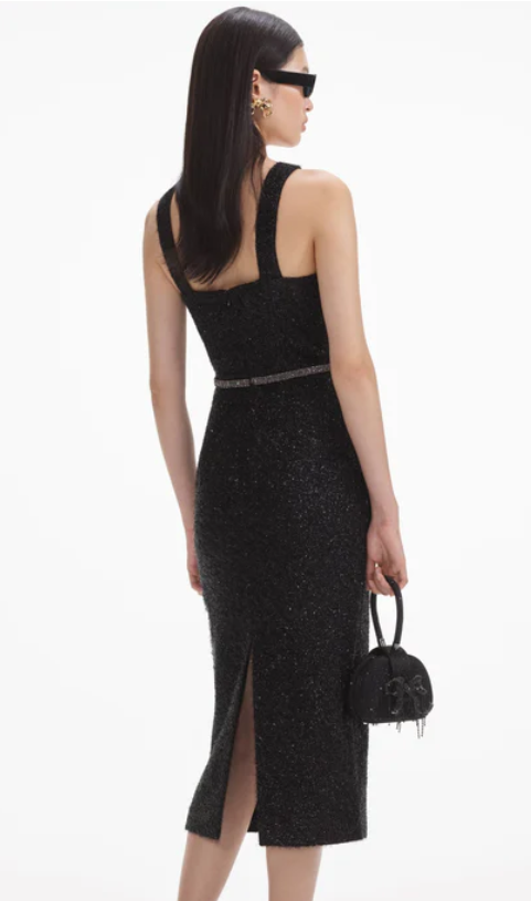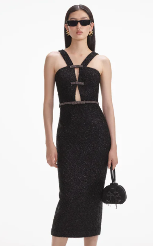 SELF PORTRAIT Black Tinsel Boucle Midi Dress