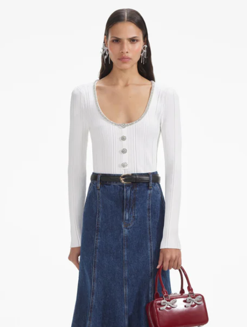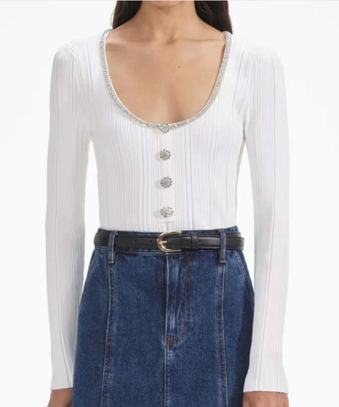SELF PORTRAIT White Embellished Knit Top