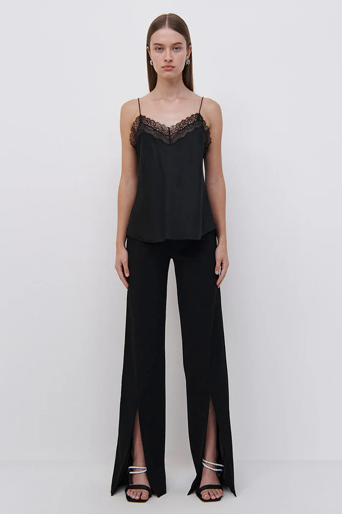 Our Signature Erika Cami in Black. Elegant silk camisole adorned with romantic lace trim and slinky barely-there straps. A Jonathan Simkhai signature.