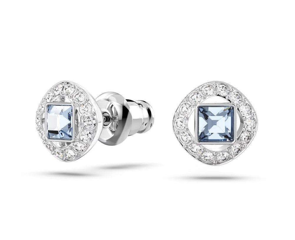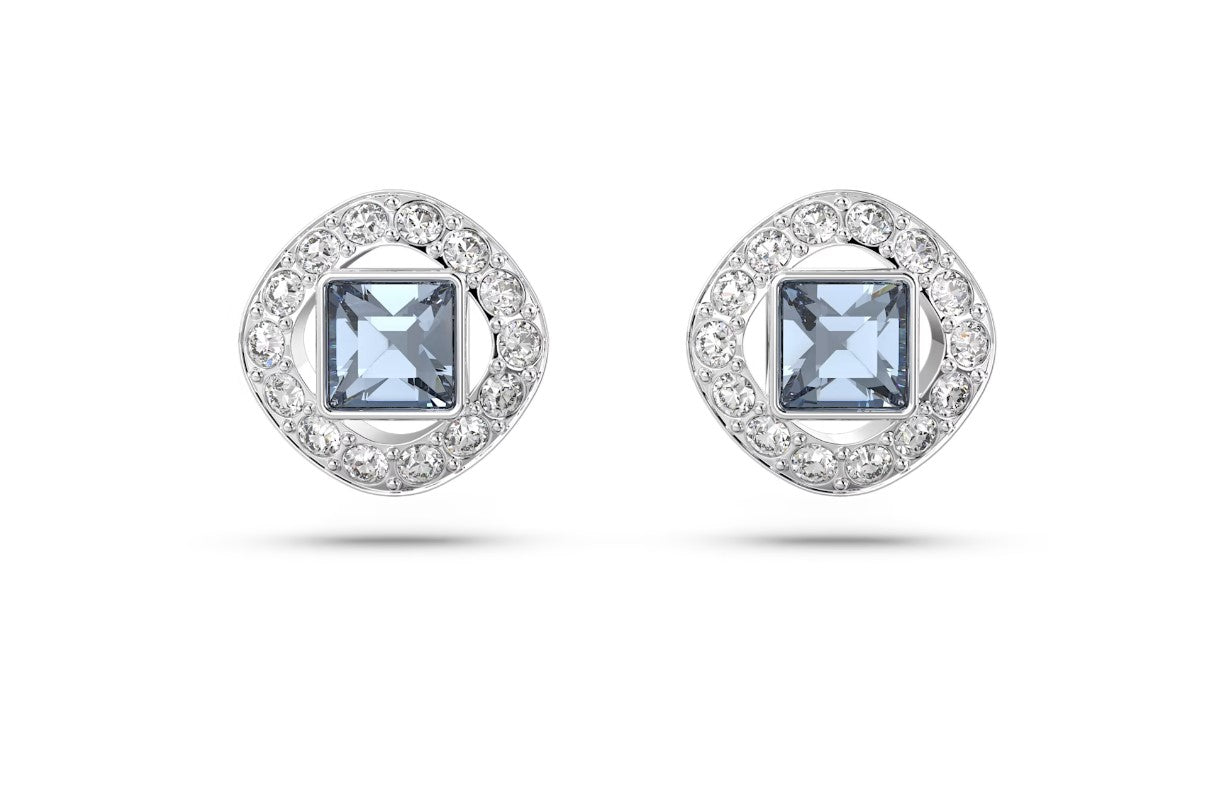 For a drop of dazzling crystals, choose these delicate studs. The rhodium plated design features a cool blue center stone surrounded by a circle of shimmering clear pavé. This versatile pair makes an ideal gift, and works for everyday wear or special occasions.