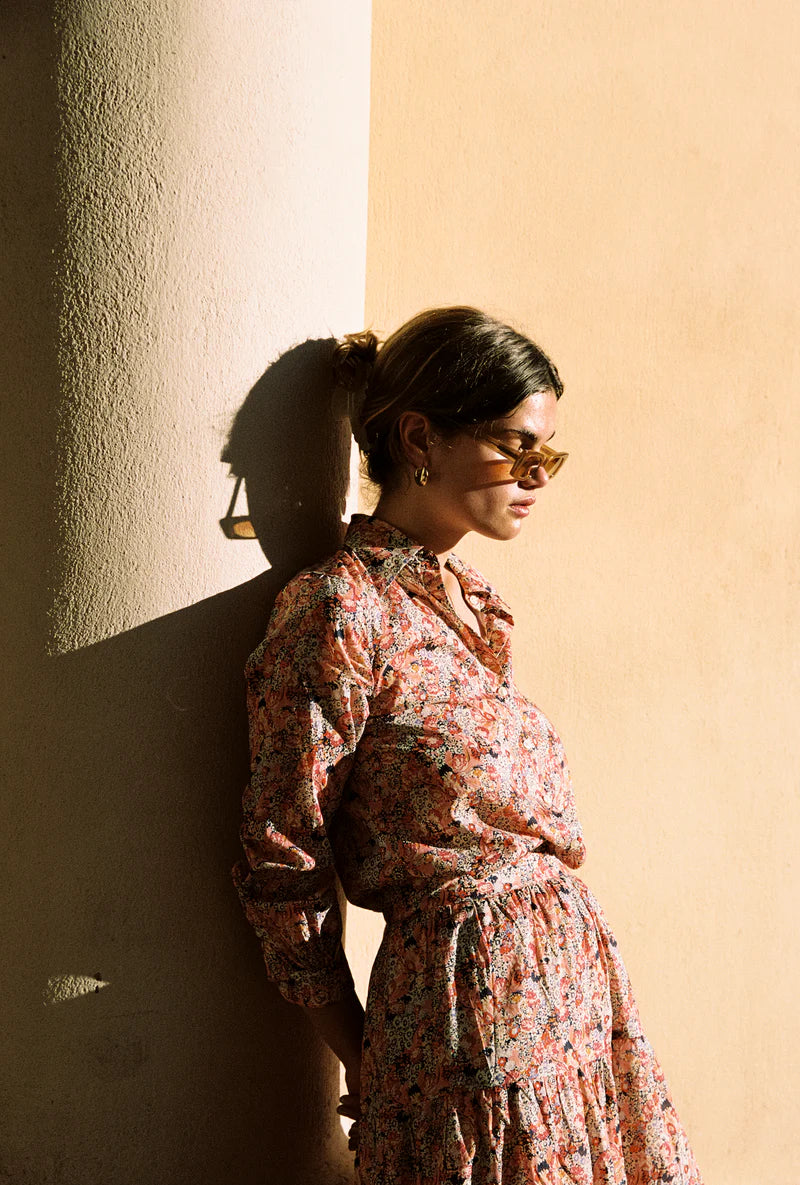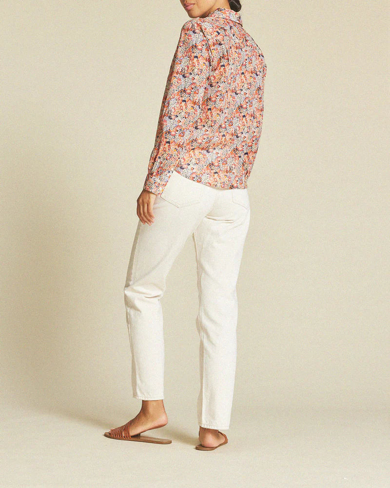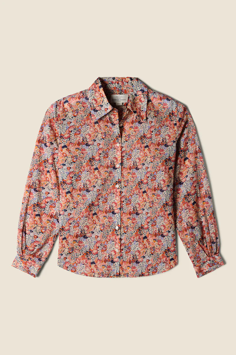 Introducing a new take on our Grace Classic Shirt, the Jacquelin Shirt. This shirt fits true to size, has a clean front, and a slightly exaggerated collar. Shown here in Vino Daisies. Made from our soft cotton.