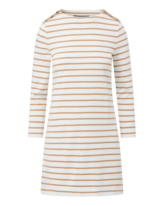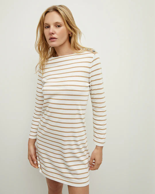 No summer wardrobe is complete without a great T-shirt dress. In ultra-soft stretch cotton, our mariner-striped take is designed for a relaxed fit and features decorative buttons at the shoulders. Pair it with sneakers for day; switch to wedges for a night out.