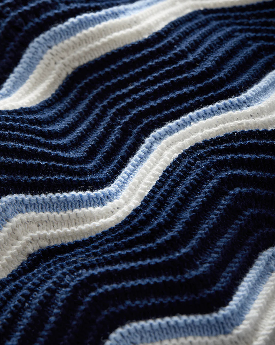 The classic shift dress, in a striking contrast chevron knit for spring. Crafted from a thick yet breathable stretch-cotton blend, the Templeton knitted dress in blue is cut for a close fit that hugs and flatters the body. Scalloped trimming along the hems and neckline completes the look. Effortless yet elevated, it seamlessly transitions from day to night—just swap your flats for heels to turn it up a notch.