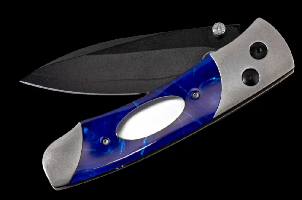 William Henry’s A200 expands on our tradition of fine folding knives with a design that has a little attitude, a lot of finesse, and remarkable utility in a compact and lightweight package. Each blade is crafted from CPM 20-CV stainless steel honed to a razor edge. The frame is hand-finished aircraft grade titanium with inlaid Kirinite, an exceptionally durable polymer. Finished with a stainless clip and stainless fittings, and proudly built in the USA.