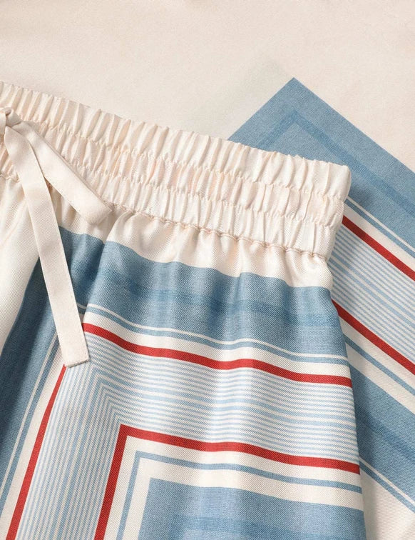 The Track Pant in Ticking Stripe from our Cruise 2026 Collection, Twisted Romance. A silk pant featuring an elasticated waistband and side seam pockets.